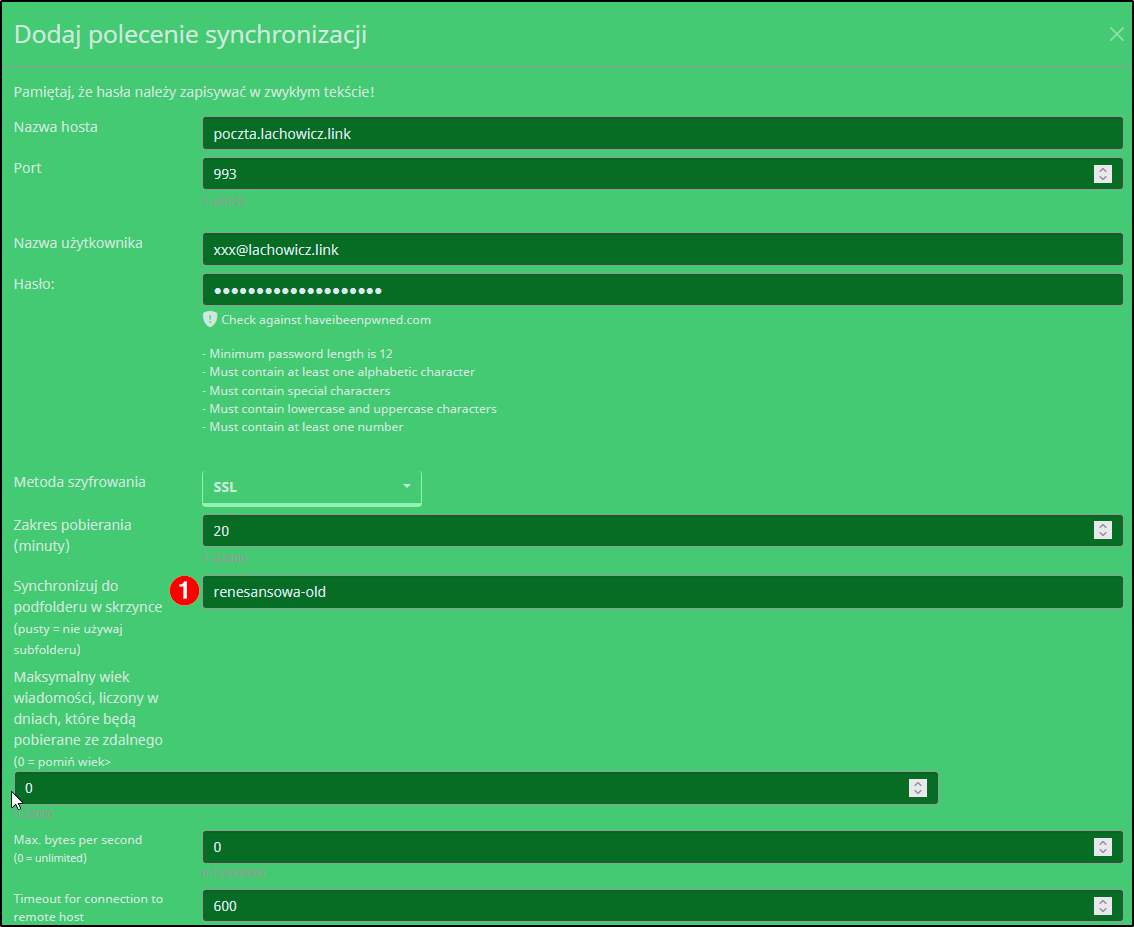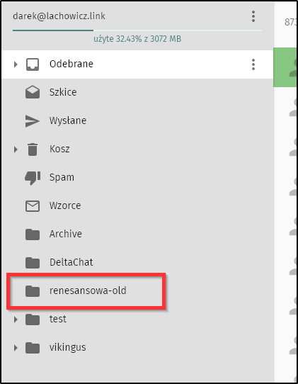 Ja osobiście wolę mieć tę pocztę w oddzielnym folderze. Do tego folderu zostanie pobrana cała skrzynka z renesansowej INBOX, SENT, itd.