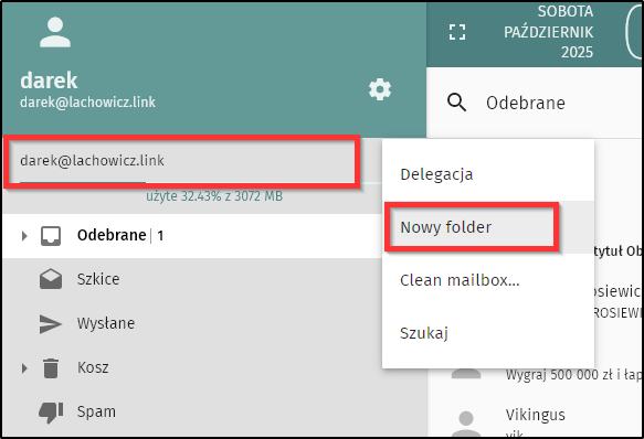 • Logujemy się do panelu poczty. Można to także zrobić w kliencie poczty (Thunderbird)